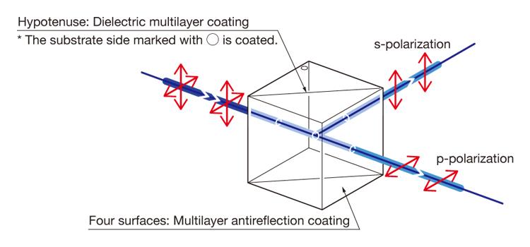 ■ 镀有多层电介质膜,光量损失很小,可以有效地分离偏振光。