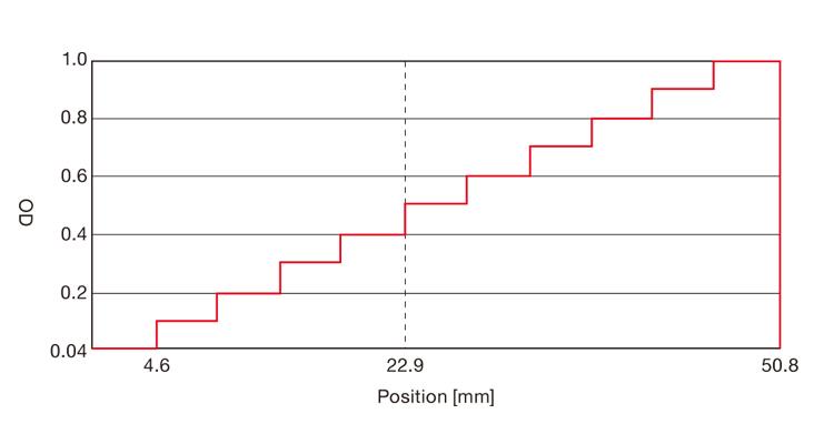 11阶梯的等间距光学密度排列在1块玻璃上,用眼睛比较,即可知道未知光学密度样品的大致光学密度值。