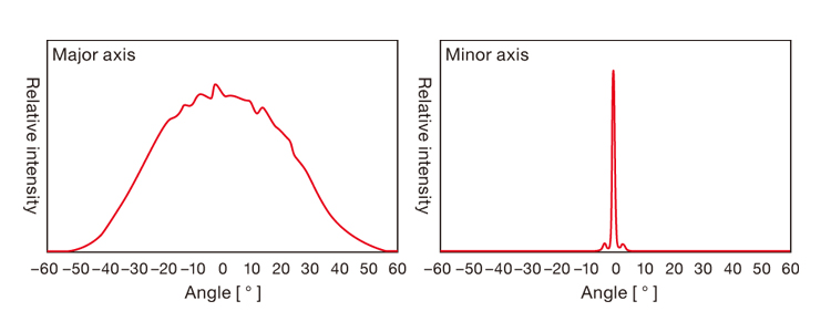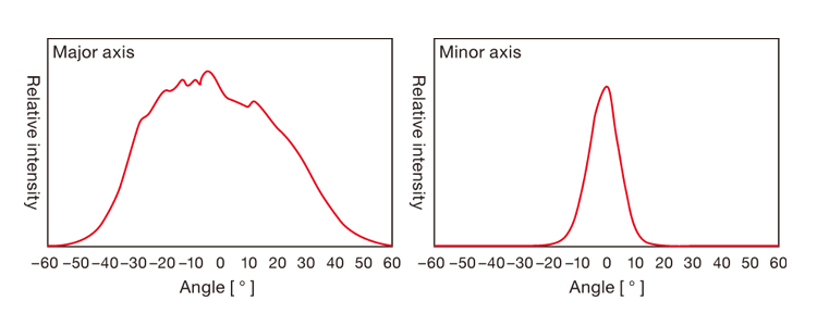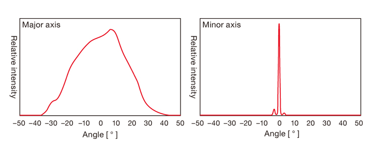 ◦元件表面加工为随机的微小透镜。而且,一个一个的透镜将光束呈椭圆状发散。因此,由于光束不会向无关方向散射或反射而引起大量的光量损失。