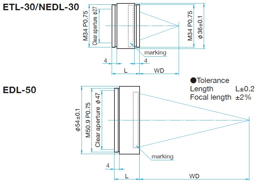 NA0.1以下的透镜,对准直激光成像后的焦点光斑直径几乎接近衍射极限。(ETL为0.25以下)