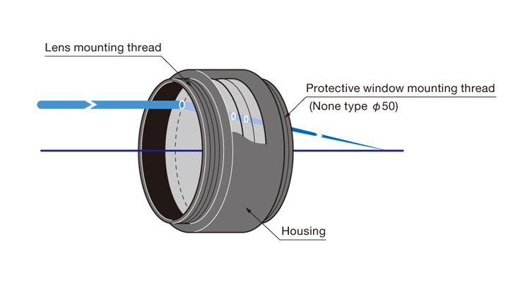 ▶为了保护透镜以避免被激光加工时溅出的粉末所损伤,可以配置另外销售的保护窗玻璃。